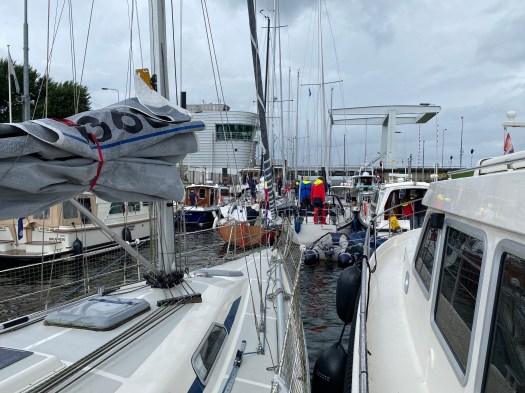 Samstag, 7.8.2021: Unsere letzten Seemeilen stehen für diesen Törn an. Da die Vorhersage schlecht ist, rechnen wir mit einigen Wartezeiten vor den Schleusen – was sich auch bestätigen soll.