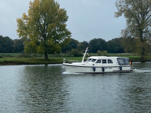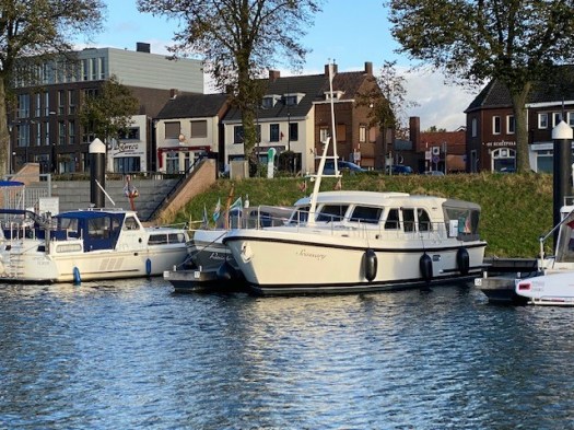 Regen und Feuchtigkeit bestimmen diesen Tag. Wir überlegen kurzfristig, s’Hertogenbosch oder auch Maasbommel (ebenfalls nur aus „Nostalgie“) anzufahren, entscheiden aber doch, Strecke zu machen und zum ersten Mal in Mook festzumachen. Unterwegs treffen wir eine andere Linssen 40.9 Sedan – Eigner ist Familie Vos – die uns ein Stück begleitet und uns das obige Foto geschickt hat. Das Gegenstück existiert natürlich auch -zu finden sicherlich auch bei ausgiebiger Recherche auf den Facebook-Seiten der LinssenYachts Crousing Group.