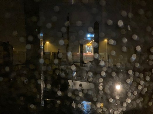 Kaum auf der Maas ziehen Wind und Wolken sowie die angekündigte Schlechtwetterfront auf. Also Persenning zu und Weiterfahrt wie geplant. Leider kommt die Gewitterfront eher als gedacht. In den JH Venlo wollen wir eigentlich nicht, der Passantenhafen beherbergt jedoch in seinem Umfeld eine große Kirmes und alles weitere die Maas hinab erscheint uns bei zunehmendem Wind auch nicht geeignet für eine sichere Nacht. Also kehren wir bei 6-7 bft Wind um, um doch den JH anzusteuern. Dort ist zum Glück ein einziger Platz noch frei – am Ende des Stegs an backbord in einer Box, die wir nur ohne Fender überhaupt anfahren können. Festgemacht können wir bei nunmehr 7-8 bft im Hafen (!) die Fender ausbringen und liegen sicher – man mag auch sagen eingequetscht – für die Nacht.