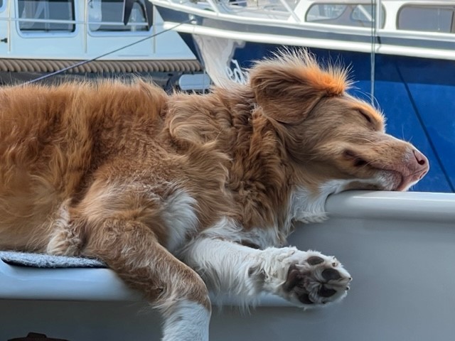 Hier hat Koffie dann auch ihre „Bootstaufe“ – sie ist zum ersten Mal vom Steg ins Wasser gefallen. Der Schreck ist bei den Menschen sicherlich aber deutlich größer als bei ihr selbst.