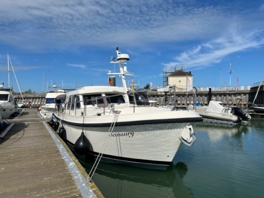 Um 11.30 passieren wir die Hafenmole und begeben uns auf die Rückfahrt in nördliche Richtung. Die Tide ist mit uns, der Wind leider nicht. Trotz der Stabis schaukelt es heftig und die Skipperin wird wirklich zum ersten Mal seekrank. So etwas kannten wir sonst nur von unserem Mittleren auf der Überfahrt über den Kanal, wobei dieser deutlich heftiger gelitten hat. Das soll das Unbehagen der Skipperin nicht schmälern. Wir überlegen lange, woran es wohl liegt – ist es die deutlich nähere Beziehung zur Wasserlinie in der Sedan im Vergleich zur AC? In der Tat scheint das Wasser fast auf gleicher Ebene zum Gangbord.