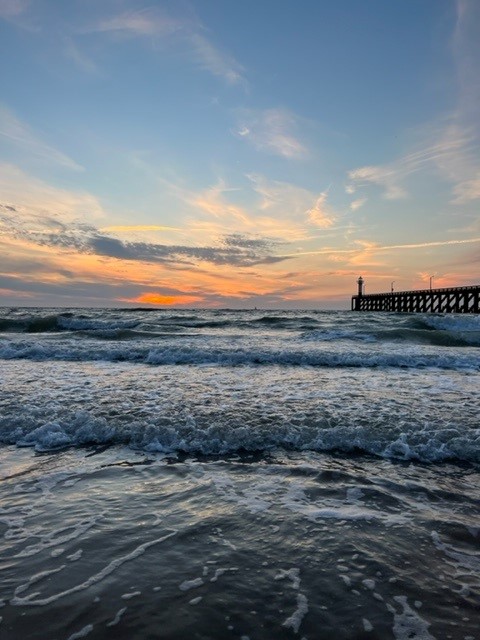 Hier gibt es fussläufig vom Hafen einen Strand für die Hunde. Koffie soll ja das Schwimmen nicht verlernen, sondern eher trainieren. Die Abendstimmung ist wunderbar, es ist wieder kirmes-ähnlich: zumindest ein Riesenrad in der Nähe und Live-Musik zum Verbellen gibt es auch. Das fällt ein verlorenes Apportel nicht ins Gewicht. Darüber freut sich hoffentlich der nächste Hund.