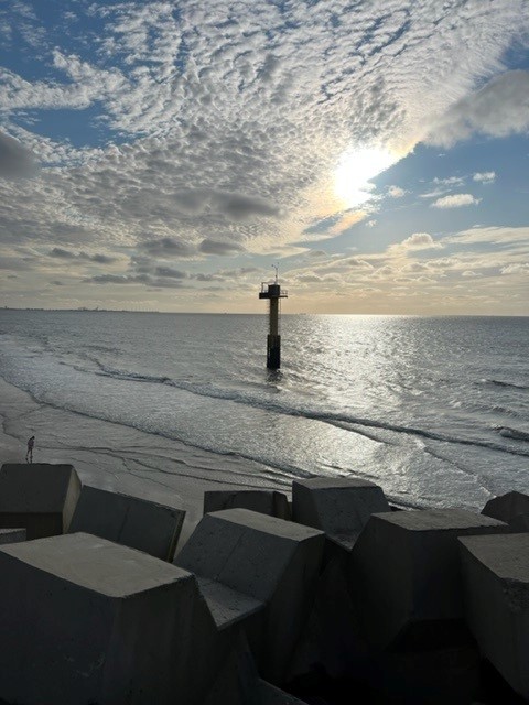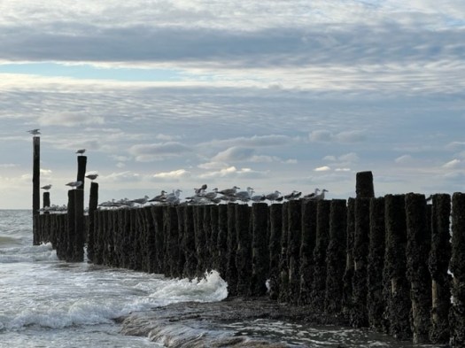 Was stimmt nicht? Genau: wir wollen eigentlich noch gar nicht weg hier. Ein Hafentag mit Strand und durchaus nettem Ort ist eigentlich nicht genug. In den beiden vorangegangenen Nächten gab es so viel Schwell, das wir bei auflaufendem Wasser alles andere als ruhig in der uns zugewiesenen und wirklich luxuriös-breiten Box lagen. Koffie hat ihre Schwimmkünste gefestigt und wir haben das typische Touristenleben an der Strandpromenade auf uns einwirken lassen. Was in einer Nacht mit 4 bft auflandigem Wind an Salz und Sand auf unser Boot kommt, lässt uns nachdenklich werden. Eigentlich könnte dies unser nächster Heimathafen für zumindest 1 Saison werden. Die Fahrmöglichkeiten auf die Nordsee oder die Westerschelde sowie die Meer-Nähe sind verlockend. Der Rest lässt uns eher skeptisch werden – und da wir nicht aus GFK sind, haben wir doch sehr viel Respekt vor Stahl, Salz, Wind und Feuchtigkeit.
