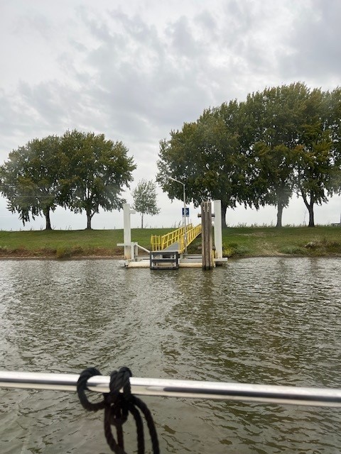 Nun geht es entspannt und wieder mit der Kraft der zwei Motoren weiter Richtung Grave. Wir haben Glück und können dort direkt in die Schleuse einfahren. Der Hafenmeister weist uns telefonisch einen Platz im Hafen zu – er kommt selbst erst später vorbei. Zu diesem Zeitpunkt haben wir unser Liegegeld schon sehr komfortabel über die Blue Water – App bezahlt.