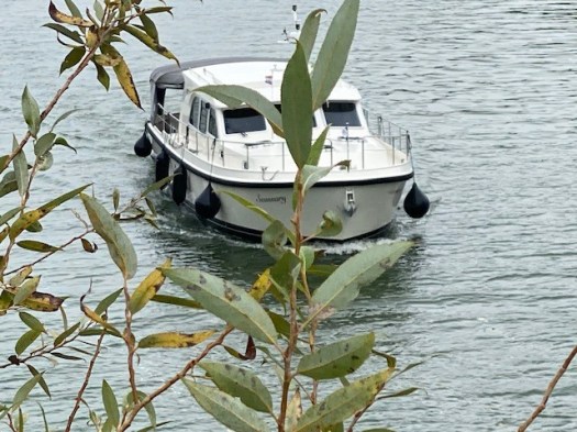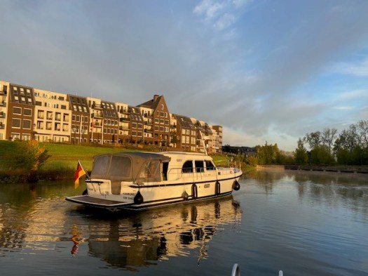 Nun geht es weiter Richtung Stevensweert. Kurzer Schlag, keine Vorkommnisse. Beide Motoren heute wieder ohne Probleme startend. Nach dem Abzweig von der Maas in Richtung Van der Laan Yachting (dem Startpunkt unseres Bootslebens) ruhige Fahrt bei zunehmendem Wind und Regen, dennoch ein schönes Bild der Seassary unterwegs, was wir natürlich niemandem vorenthalten wollen: