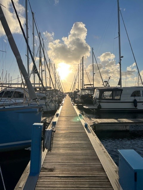 Am späten Abend kommen wir endlich an Bord an – Job und vor allem die Autobahn haben doch mehr Zeit benötigt als geplant. Unsere direkten Stegnachbarn sind schon ins Winterlager aufgebrochen und schicken uns Grüsse von unterwegs. Uli und Sabine als „Übernachbarn“ schicken uns kurz vor unserer Ankunft diese schöne Bild unserer Seassary – wir freuen uns schon, die beiden am nächsten Morgen sicherlich gemeinsam mit ihrem Hund Flocke begrüssen zu können. Nun aber ist erst einmal Ankommen, ein Schluck Wein und dann die Nachtruhe angesagt. In der Zwischenzeit waren wir zwar zweimal an Bord, jedoch nur mit Teilen der Crew und sind daher nicht gefahren. Dies hatte zuvor aber DMS Holland gemacht. Mit DMS war für einen entsprechenden Nachlass auf den Preis für unser Magnus Master System vereinbart worden, dass unser Boot im Gegenzug für Probefahrten genutzt werden kann. Aufgrund terminlicher Schwierigkeiten konnten wir dabei nicht an Bord sein – die freundlichen MitarbeiterInnen von DMS hatten daraufhin unser Boot von Port Zélande nach Scheveningen und wieder zurück überführt. Die Kommunikation lief reibungslos, das Boot war nach Wiederankunft in MPZ sogar mit Süßwasser komplett abgespült und als Ausgleich für den verbrauchten Treibstoff zwischendurch mit 500 l Diesel betankt worden. Wir hoffen, dass sich für DMS aus dieser Aktion einige neue Kunden generieren liessen…