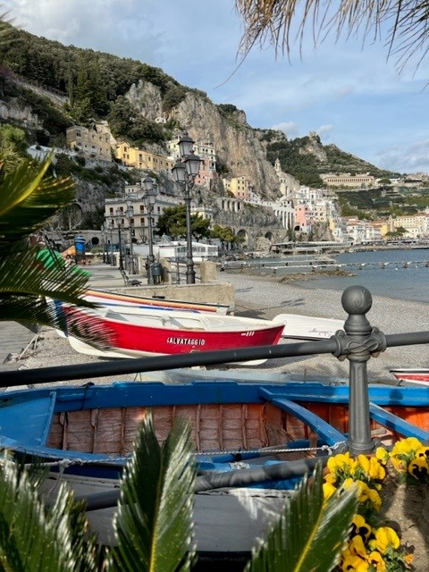 Gefühlt sind wir 10 mal die Amalfitana lang gefahren und haben tolle Ausblicke genossen, nicht zuletzt in Positano. Da dieser Ort mehr vertikal als horizontal gebaut ist, mussten wir die Hunde oft tragen. Ein Toller (Shisha) und ein frisch an den Ellbogen operierter Aussiedor (Koffie) sollten ja nicht überstrapaziert werden – und damit ging es herunter bis an den Strand von Positano und zwischenzeitlich auch herauf bis weit über Positano. Die üblichen Postkartenbilder haben wir auch – aber die gehören nicht in den Boots-Blog 🙂 Daher hier ein etwas anderes Panorama-Bild.