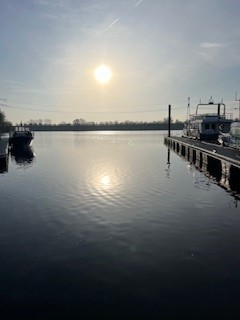 Nach einem guten Frühstück verlassen wir am 25.3. um 8.00 Stevensweert und blicken noch einmal kurz auf unseren Liegeplatz der letzten Nacht: