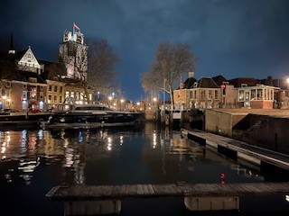 Bei der Schleusenausfahrt melden wir uns auf dem entsprechenden Funkkanal beim Sektor Nijmegen an und können zusammen mit der Berufsfahrt auch schnell das Fahrwasser kreuzen, ab jetzt geht es mit Unterstützung der Strömung zu Tal. Der Strom läuft mit 2,5-3 kn mit, so dass wir ordentlich Fahrt machen. Wind und die Berufsfahrt machen dazu einiges an Welle, so dass zum ersten Mal auf Bitte der Skipperin unser MagnusMaster-System in dieser Saison zum Einsatz kommt. Über Waal, Boven- und Beneden-Merwede kommen wir schliesslich um 17.30 in Dordrecht an und machen dort nach kurzer Wartezeit vor der Engelenburgerbrug im Hafen der Kon. Dordrechtsche R.&Z.V. fest.