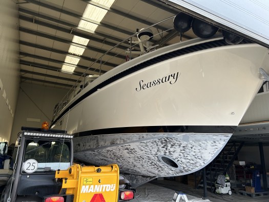 Auch wenn im Winter 2023/2024 nicht annähernd so viele Veränderungen an der Seassary erfolgten wie im Vorjahr, galt es neben den üblichen Wartungsarbeiten das Antifouling zu erneuern. Nachdem das Boot zum Ende der Saison 2023 aus dem Wasser kam, wurden einige Stellen am Übergang vom Rumpf zum Kiel deutlich, an denen nur noch der blanke Stahl zu sehen war. Damit stand auch kurzfristig der Frühjahrstörn 2024 auf wackligen Füssen, weil nicht klar war, ob alle Arbeiten zeitig genug fertiggestellt werden können. Das Abtragen des alten Anstrichs und der komplett neue Aufbau des Unterwasserschiffs waren zeitaufwendiger als gedacht.